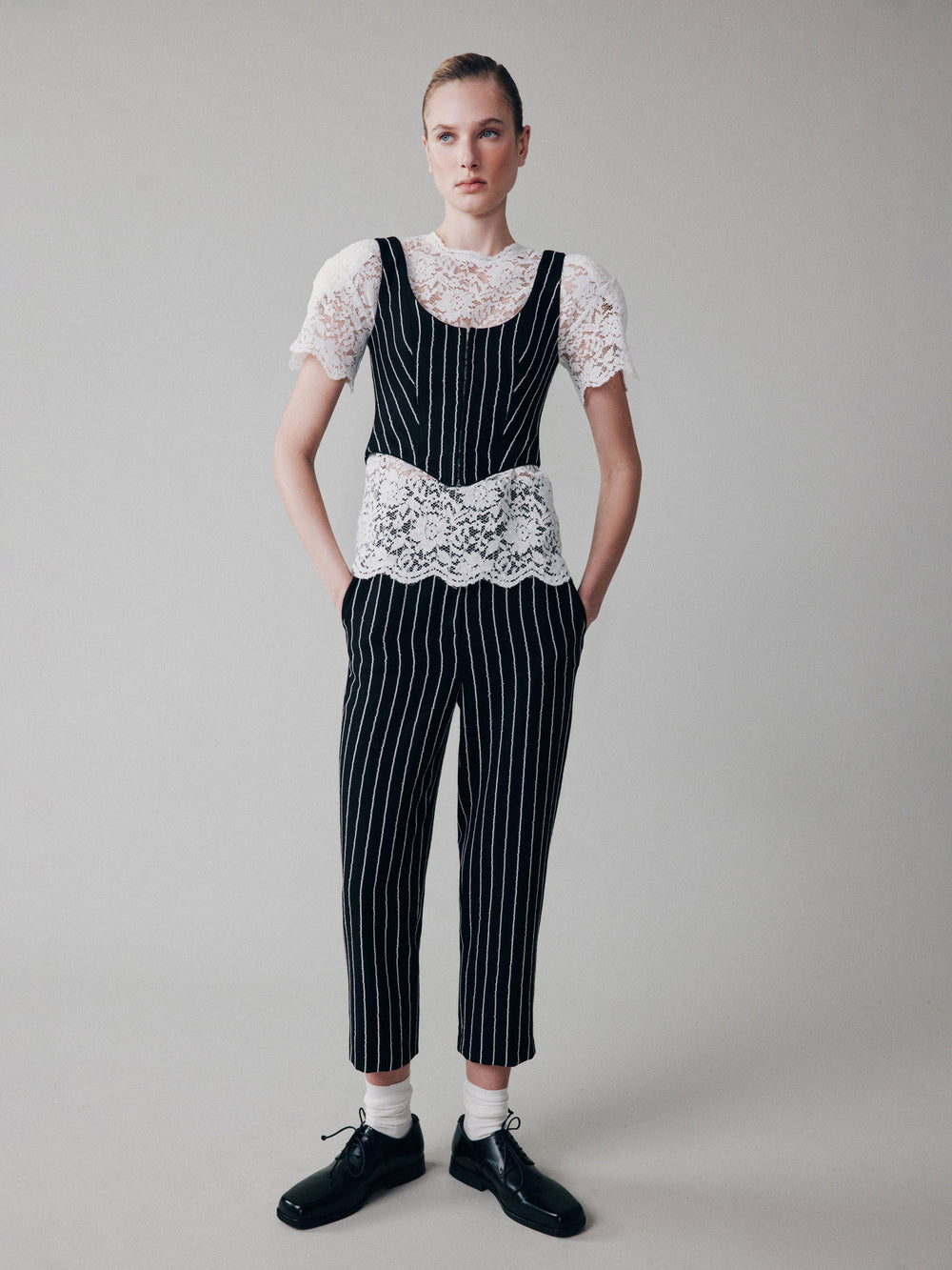 Зауженные брюки из льняной ткани в полоску