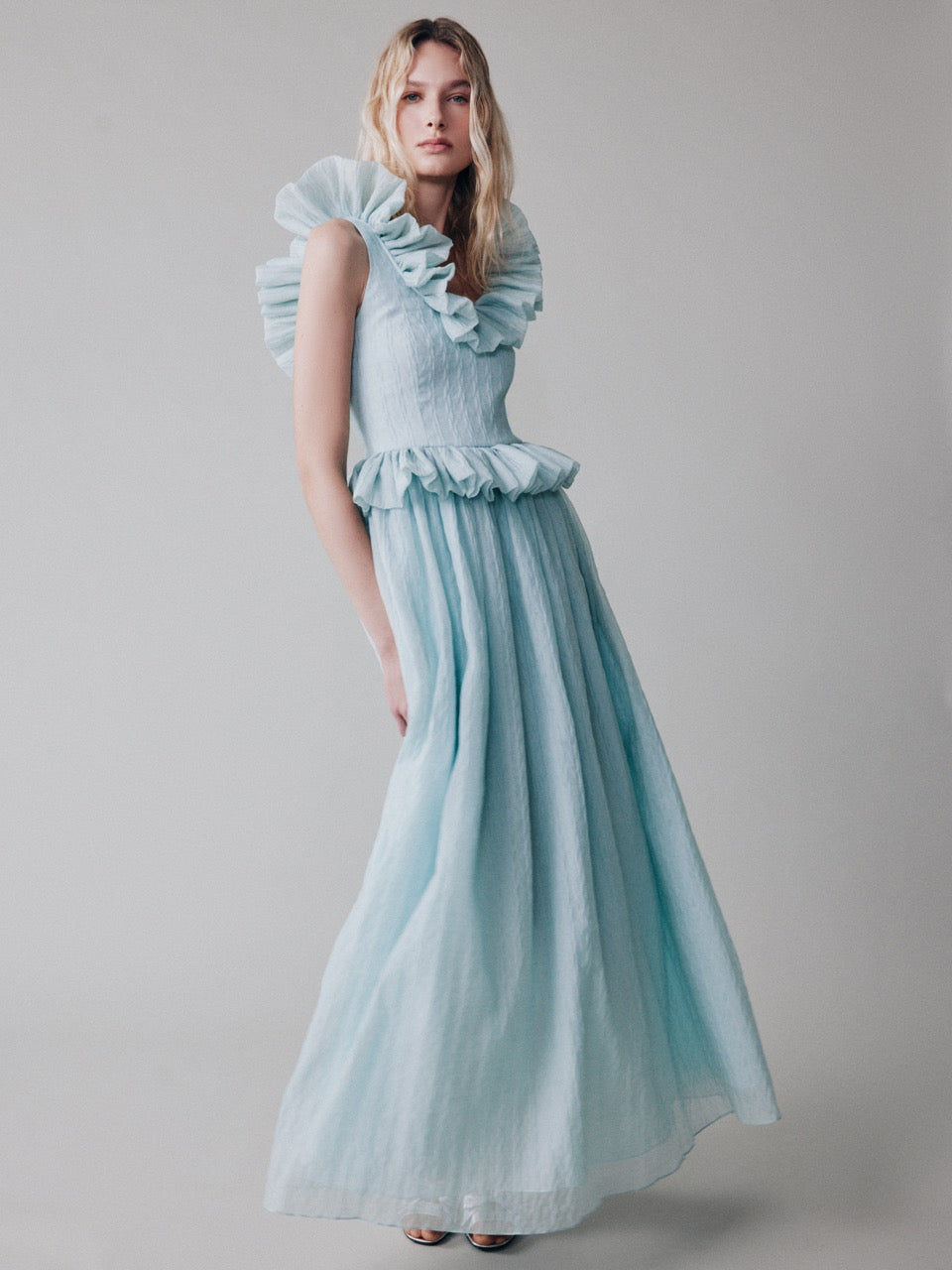 Платье макси с оборкой на талии