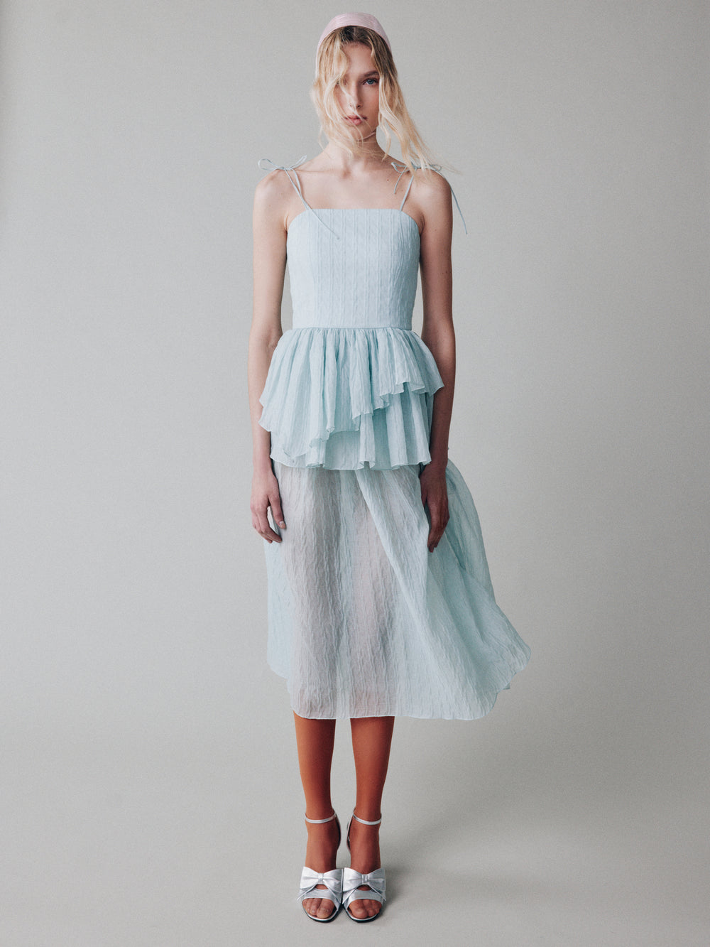 Сарафан миди на тонких бретелях-бантах