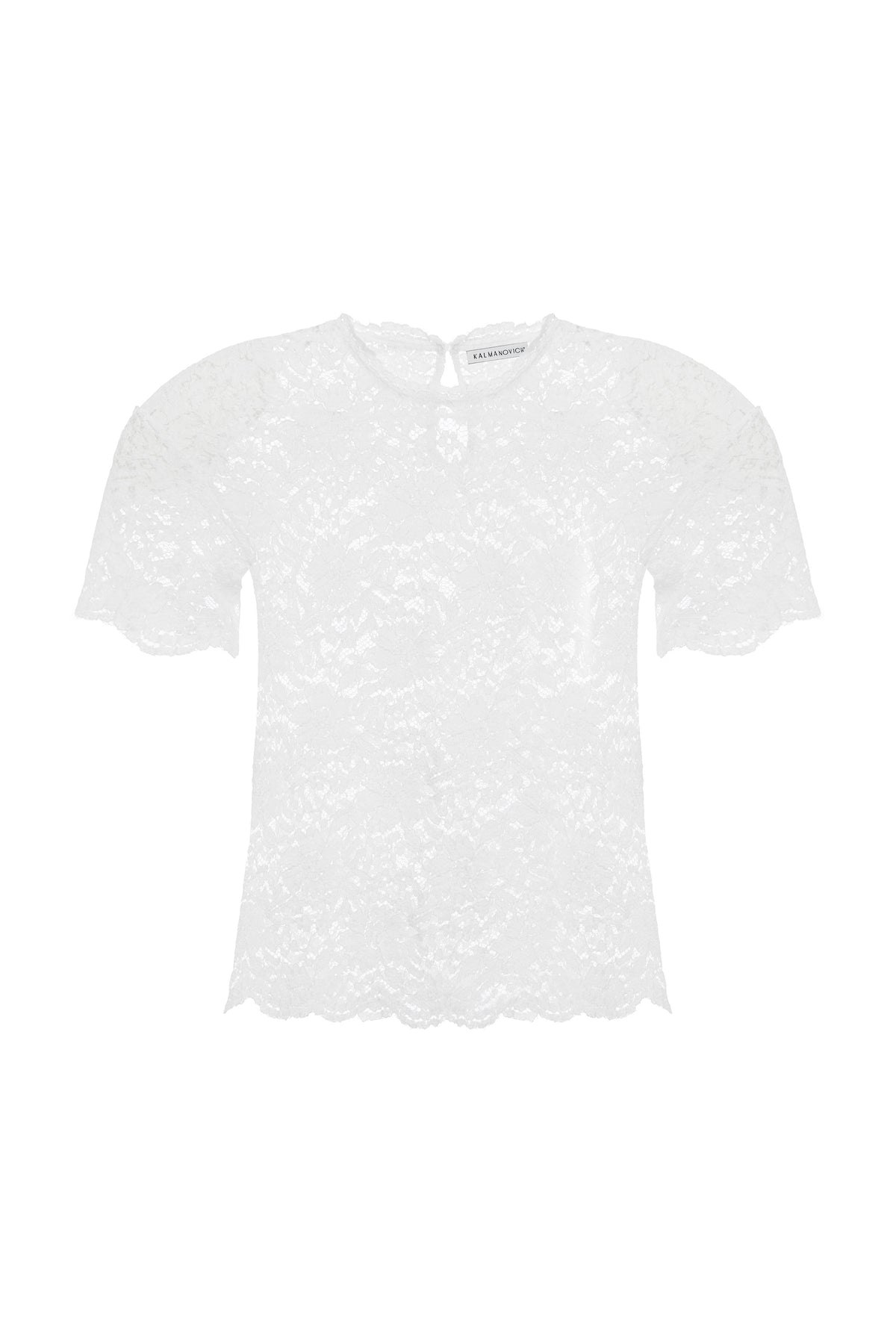 Топ с короткими рукавами и подплечниками, выполненный из кружева.