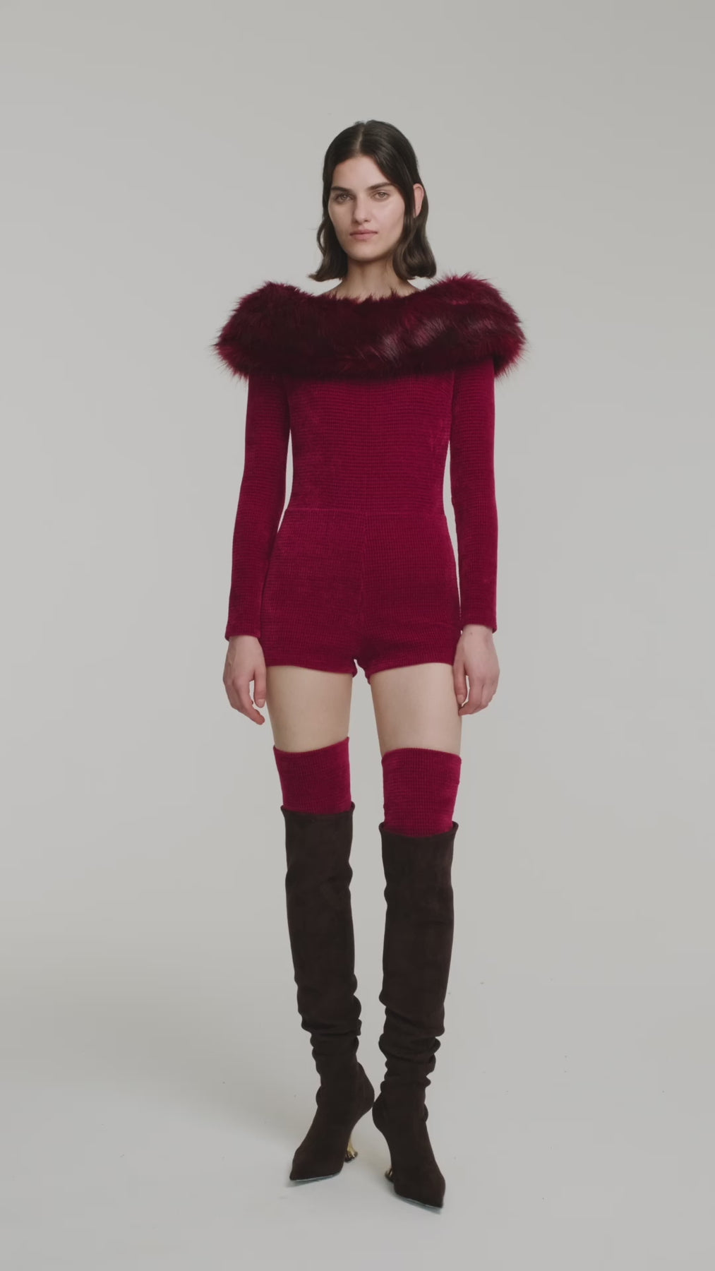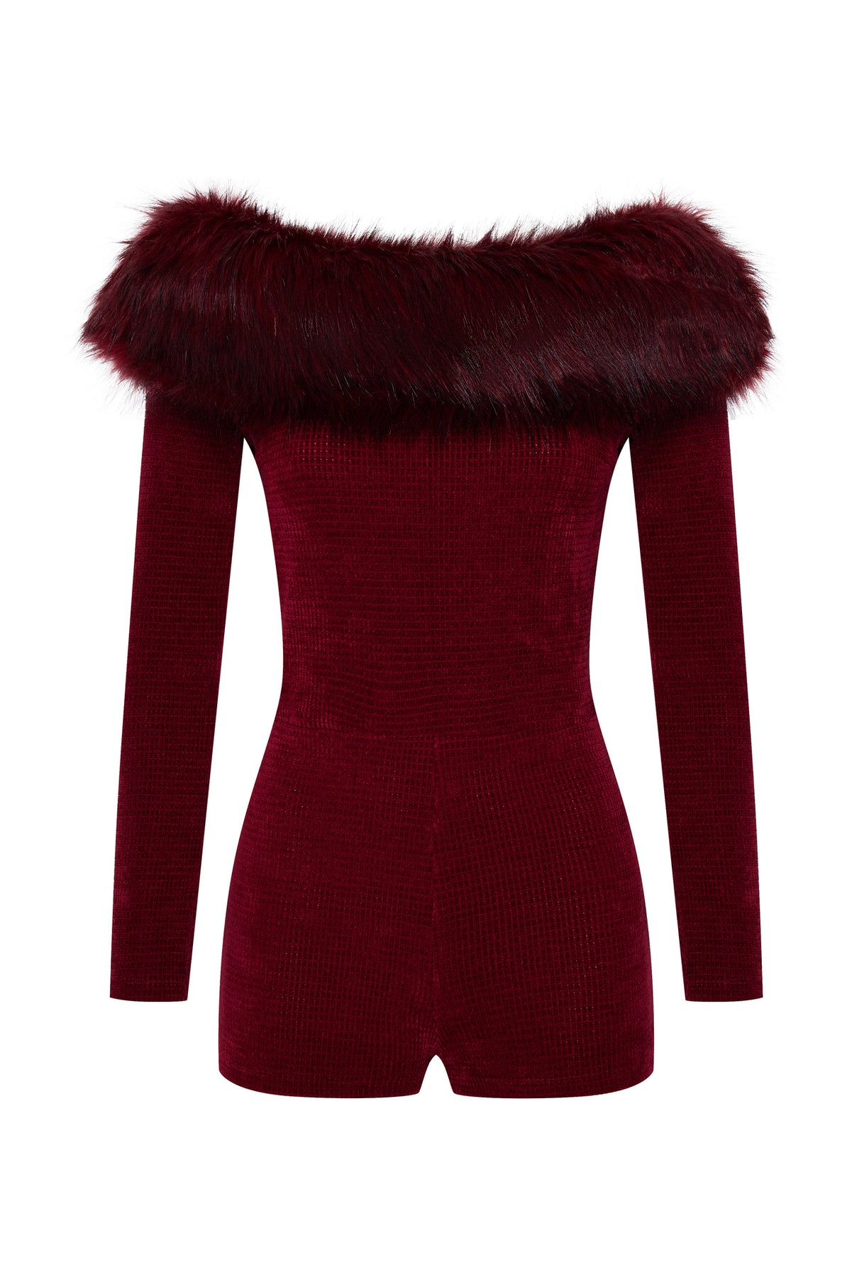 Комбинезон из трикотажа с отделкой из искуственного меха