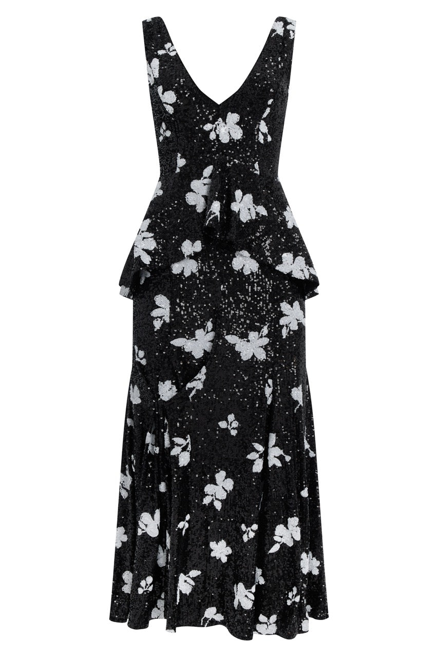 Юбка в пол из ткани, расшитой бисером и пайетками
