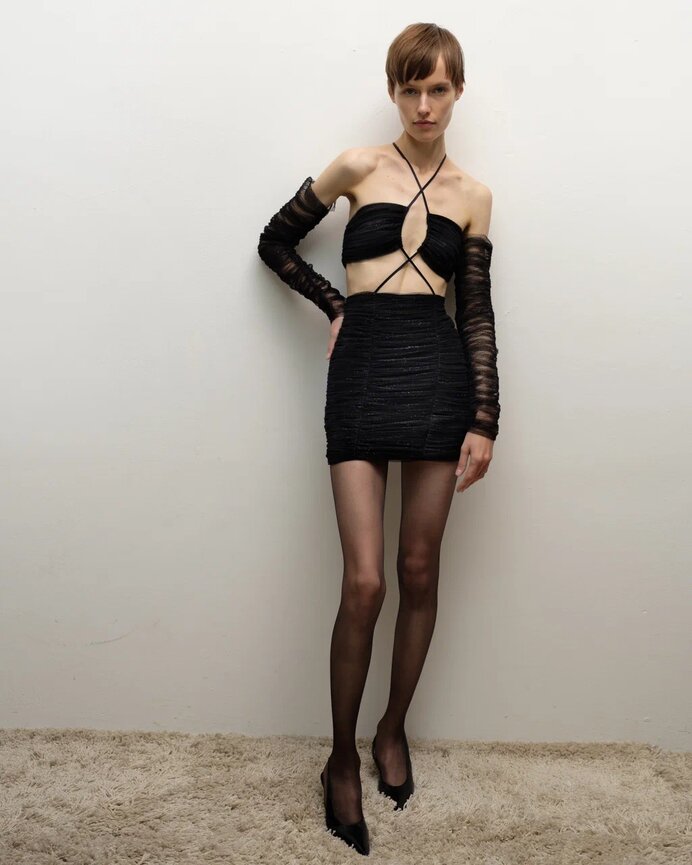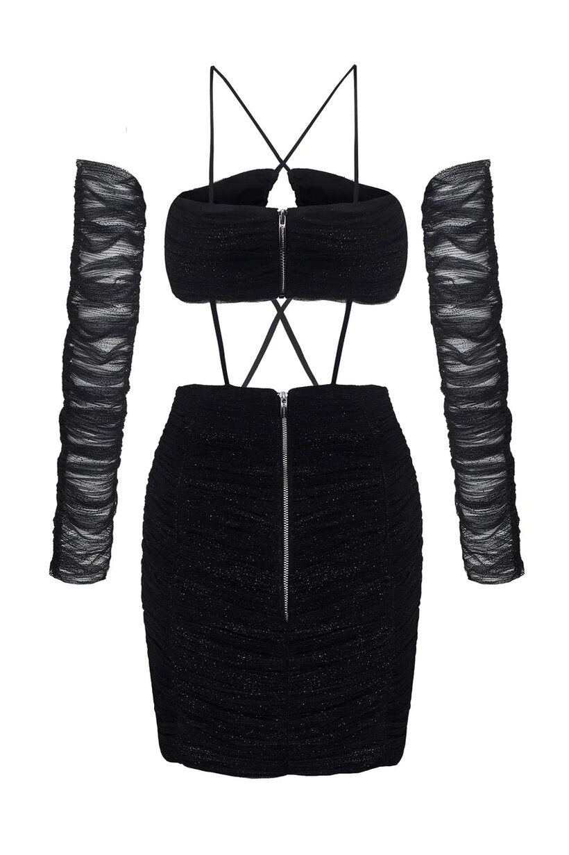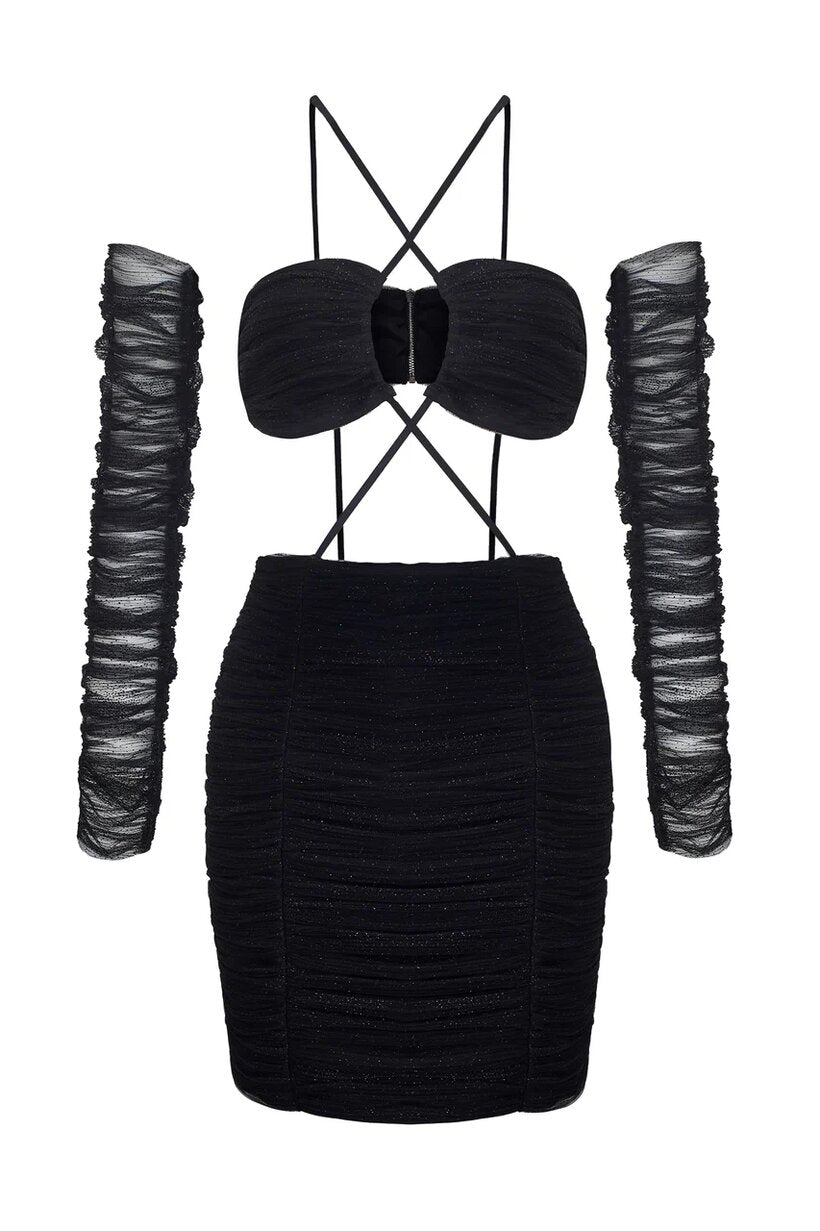 Платье из черной сетки с рукавами