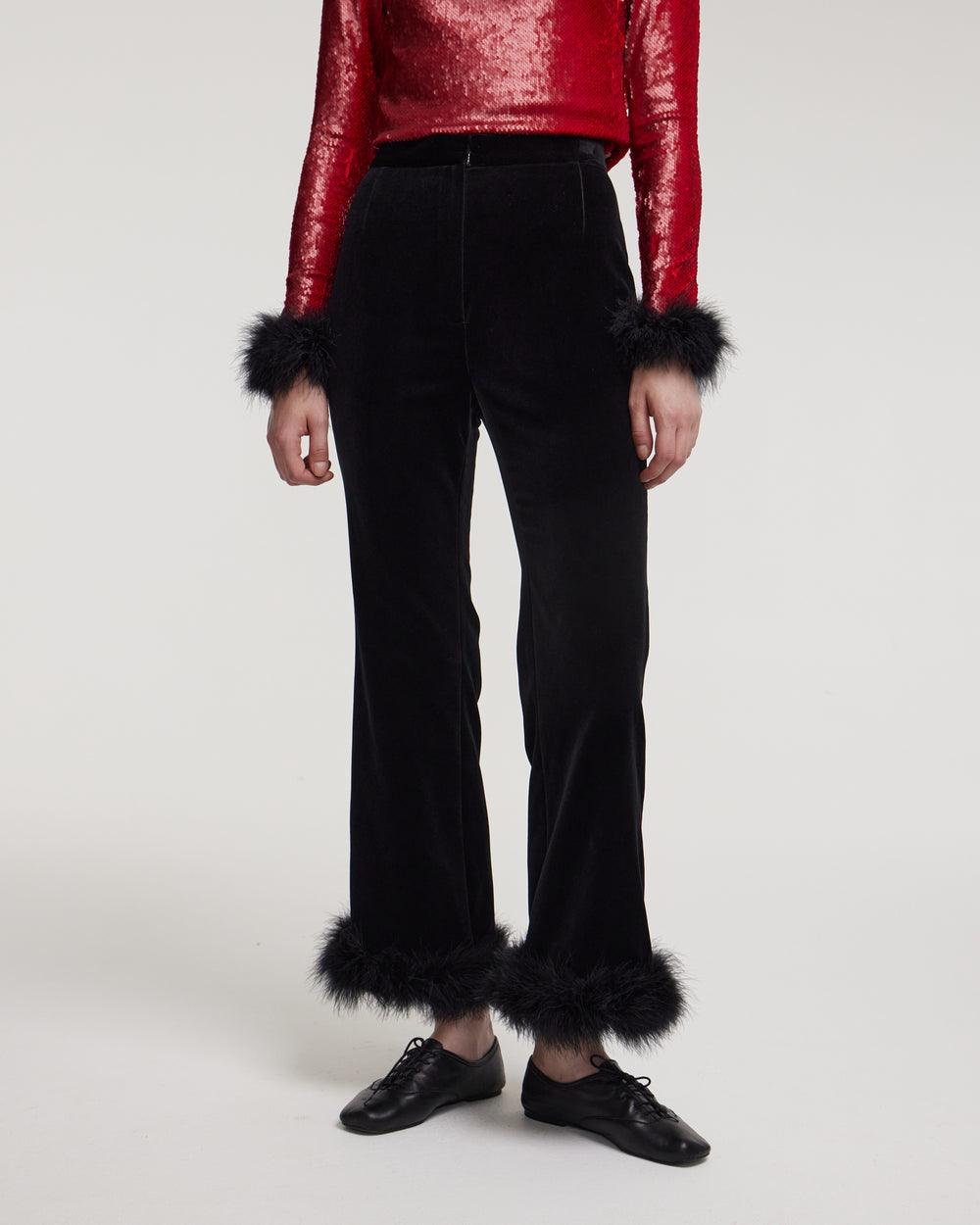 Бархатные брюки с оторочкой из искусственного меха